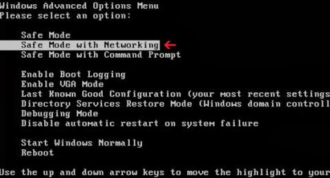 (Reboot your infected PC > keep pressing F8 key before Windows start-up screen shows>use the arrow keys to select “Safe Mode with Networking” and press Enter.)